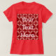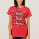 This is a red and pink pattern custom text women's t-shirt. You can add your text to the t-shirt. The design features a red and pink seamless pattern in an expressionist and minimalist style. The poster has artistic flair. The red and pink pattern was created with artificial intelligence art. The words Your Text Here show what text might look like on the t-shirt. The text is in a light pink colour. The text is on both the front and the back of the t-shirt. Click the Personalise button to add your text to the t-shirt.
