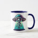Alien and UFO graphic for those into UFOlogy. A cute alien being beamed down from a UFO.
