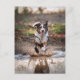AI-generated image of a dog running into a muddy puddle.