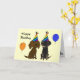 Cute fun cartoon flatcoated retrievers birthday card says Happy Birthday outside and "hope you get something special" with dog biscuit cartoon inside.