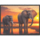 Colourful AI generated digital artwork of two elephants on a background of a beautiful sunset.