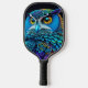 Blue, teal and turquoise owl with yellow eyes ai generated art.