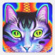 Kitty cat with green mystical abstract eyes AI generated art stickers.