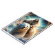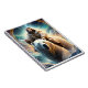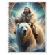 Christian Faith Jesus sits on a polar bear with white winter robe long hair and beard.Out in the snow ridding the white bear with staff in hand. Up in the ice glacier mountain. With snow and a bright stare in the night sky. On this artificial intelligence photo.
