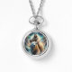 Christian Faith Jesus sits on a polar bear with white winter robe long hair and beard.Out in the snow ridding the white bear with staff in hand. Up in the ice glacier mountain. With snow and a bright stare in the night sky. On this artificial intelligence photo.