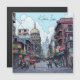 Comic book style ai illustration of downtown area of Kolkata, India architecture, motor bikes and cars. A magnet with an illustration of busy downtown street with buildings, restaurants, shops and people on their motor bikes.