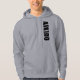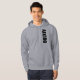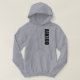 Grey hoodie with vertical aikido design in black.