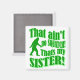 A perfect product for any crazy sister! If you love sasquatch and love to tease your sister, this is truly the perfect gift! Printing is great, magnet is bright white and the lettering is bright green!