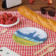 Air brushed painted photo of the Chicago skyline across from Lake Michigan shores makes stunning paper plates