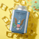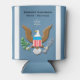 Retired or active duty, this custom can cooler honours your service in the Air Force. And it can be personalised. The emblem is a copy of the Seal of the United States on a blue background with white stripes along the edges (the Air Force colours). Personalise it with a name, along with rank (and "retired" if appropriate) above the ensign. All text is easily edited by using the template. If other changes are desired (different type font, colour, size, placement or to add text) select "personalise" then select "Edit using Design Tool."