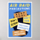 This vintage World War II poster features a blue background and five different signs. It reads, "Air Raid Precautions, Don't Run, Keep Cool, Don't Scream, Prevent Disorder, Obey All Instructions". Celebrate American and WW2 History with this digitally restored vintage war poster product from The War Is Hell Store.