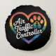 A vibrant black throw pillow featuring a colourful rainbow heart design with an airport control tower and paw print inside. Perfect for proud air traffic controllers who want to celebrate their profession with style and positivity. A great décor piece or thoughtful gift for aviation enthusiasts.