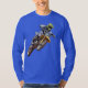 The focal point of this long sleeve tee is an awe-inspiring image of a motocross rider soaring through the air on their dirt bike. The design captures the rider in mid-flight, defying gravity, and showcases their skill and fearlessness.