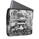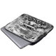 The sleeve is made of nice feeling material and seems very durable. I'm not sure how easy it'll be to clean, but the construction seems sound and the fabric is quick thick. I also like the double zipper. The printing is lovely and appears durable. The white on black contrast is nice, and the design very elegant.
