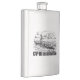 The product is a good size and came exactly as it was pictured.  The lid is not attached to the flask, which could be dangerous on drunken nights... The print came out surprisingly well and looks very sharp.  Would definitely recommend.