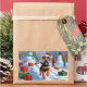 A heartwarming holiday illustration featuring a cheerful dog playing in the snow, wearing a Santa hat and surrounded by colourful gift boxes. In the background, children build a snowman beside a snow-covered Christmas tree, creating a joyful winter wonderland. Perfect for spreading holiday cheer and capturing the magic of Christmas.