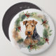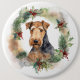 Airedale Christmas Wreath Festive Pup 6 Cm Round Badge