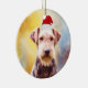 Airedale Dog Christmas Santa Hat Art Portrait Ceramic Tree Decoration