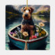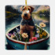 Airedale Dog on a Paddle: A Scenic Adventure Ceramic Ornament