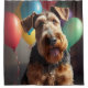 An Airedale dog with balloons birthday design is a fun and whimsical way to celebrate a special occasion with a dog lover's furry friend. This design typically features an Airedale terrier dog with a festive birthday hat and surrounded by colourful and cheerful balloons.
