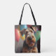 Airedale dog with cake and balloons tote bag