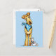 Subject illustration by Andie of an Airedale Terrier wearing a little blue sailboat scarf and hugging a puppy toy.