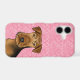 Destei's original cartoon illustration of a cute Airedale Terrier breed dog on a pink background colour with a pattern of hearts shapes.
