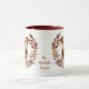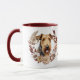 A pretty autumn wreath in tones of cinnamon brown, tan, and cream surround the watercolor image of an Airedale Terrier Dog. The image is printed twice on the mug, with your custom text between them.