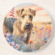 Airedale Terrier Dog in a Wildflower Meadow Coaster