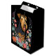 A cute gift wrapping bag for Airedale Terrier dog owners and lovers, with a happy Airedale Terrier in the flower garden. The Airedale looks cute and happy with its tongue hanging out surrounded by healthy blue, pink and yellow flowers on a black background. Great for gift giving for any Airedale Terrier owners - Airedale mum, dad, grandma, etc., or if you are giving a gift to a spoiled Airedale Terrier. The colourful flowers are great for the spring season, and perfect for any gardener or flower lover.