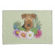 Airedale Terrier Dog With Colourful Flowers Green Pillowcase