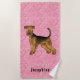 Airedale Terrier Dog With Pink Hearts And Name Beach Towel