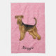 Airedale Terrier Dog With Pink Hearts And Name Tea Towel