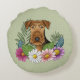 Airedale Terrier Head With Colourful Summer Flower Round Cushion