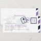 Customise this vintage-inspired airline boarding pass and announce your wedding date in a fun and unique way! Shown in tones of Navy and Medium Purple. A mix of a typewriter fonts and calligraphy fonts for a true vintage feel.