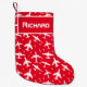 Cool red and white aeroplane patterned Christmas stocking. Great idea for the airline pilot, aircraft engineer, plane spotter or flight attendants. Change the name to suit your requirements.