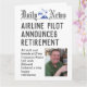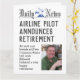 Retirement Card in the form of a Newspaper. Airline Pilot retirement card. Your Name Choice and photo added as the person Retiring.