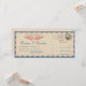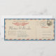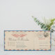 A modern take on vintage airmail, also designed as a boarding pass that has the RSVP tab included that guests can cut off and mail back. Note, the card will not be perforated but there is a "cut here" note with scissor icon. Perfect for travel themed weddings or anyone who loves to fly. Red white and blue fits with patriotic theme too. The background colour is customisable but will mostly be trimmed off after printing.