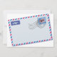 This design is a familiar looking airmail envelope. It has the airmail sticker in the tiop left and a stamp top right. This airmail envelope design looks great on this Invitations