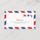 Vintage inspired airmail escort/placecard design. Fun for a destination, vintage themed event. Bright Red and Royal Blue Stripe background continues on reverse for added pop of colour (include a small thank you note or other text of your choice).