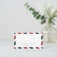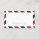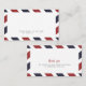 Vintage inspired airmail escort/placecard design. Fun for a destination, vintage themed event. Red and Navy Stripe background continues on reverse for added pop of colour (include a small thank you note or other text of your choice).