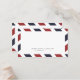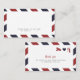Vintage inspired airmail escort/placecard design. Fun for a destination, vintage themed event. Red and Navy Stripe background continues on reverse for added pop of colour (include a small thank you note or other text of your choice).