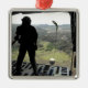 Airman watches a practice bundle fall metal tree decoration