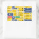Collection of yellow and blue airport signs and information boards. High contrast signs to ensure good readability and legibility of the signage.