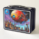This is a standard metal lunchbox that appears to work just fine. We designed this box ourselves with an uploaded photo and custom text on the front and back. It looks absolutely beautiful except the front of the lunchbox is not centered like it shows in the photo. The print borders don't align with the inset flat part of the box where the preview photo online showed it perfectly centered in there. The back looks nice and centered though.