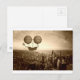 A Steampunk dual balloon airship drifts over the heart of Chicago. Sepia toned