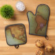 Airship over Western Hemishphere Steampunk Map Oven Mitt & Pot Holder Set