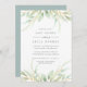 Elegant watercolor botanical baby shower invitation frames your bridal shower details with a border of sheer pastel watercolor foliage in pale, cool greens.