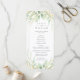Our garden chic wedding program features your ceremony details in elegant grey lettering, framed at the top and bottom by pastel green foliage and leaves. Reverse side lists the members of your wedding party with easily editable text fields. Coordinates with our Airy Botanical wedding invitation collection for summer, spring, outdoor or garden weddings. Use the template fields to add your ceremony and bridal party information, and then click "Customise It" to reposition elements if needed. Need help? Contact me via the "Ask this Designer" link on this page.