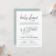 Whether you can't gather for a party due to coronavirus social distancing guidelines, or long distance family and friends are just too far away, this beautiful Baby Shower by Mail invitation will allow loved ones to celebrate your new baby from anywhere. The design features modern minimalist typography adorned with a simple gender neutral stem of pale blue green leaves. Use the design tools to add your virtual baby shower details or customise to suit your event.